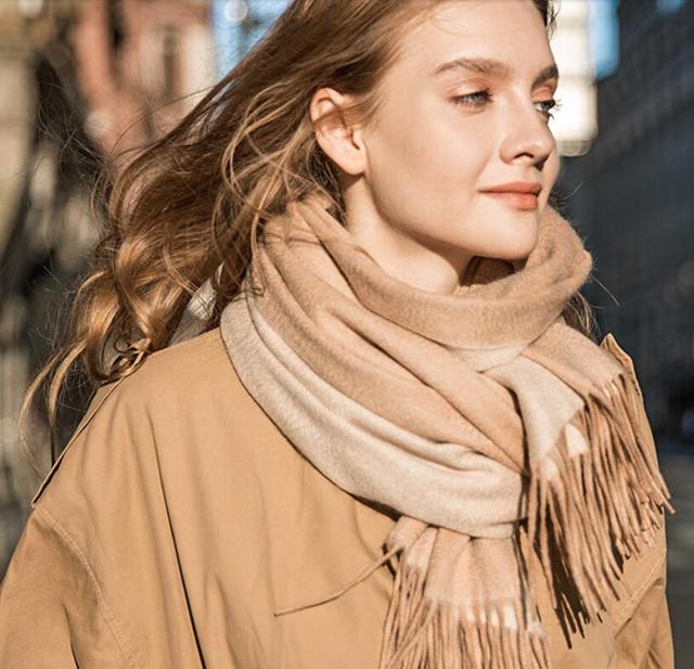 Pashmina Scarf Cashmere Wool Scarf Women Winter Scarfs Double sides Beige Camel Thick High Quality Natural Fabric Free Shipping